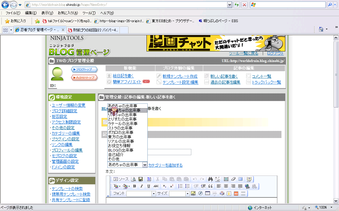 ある程度記事書いた後に「これ」やってしまった、カテゴリー選択の後ろあたり注目。